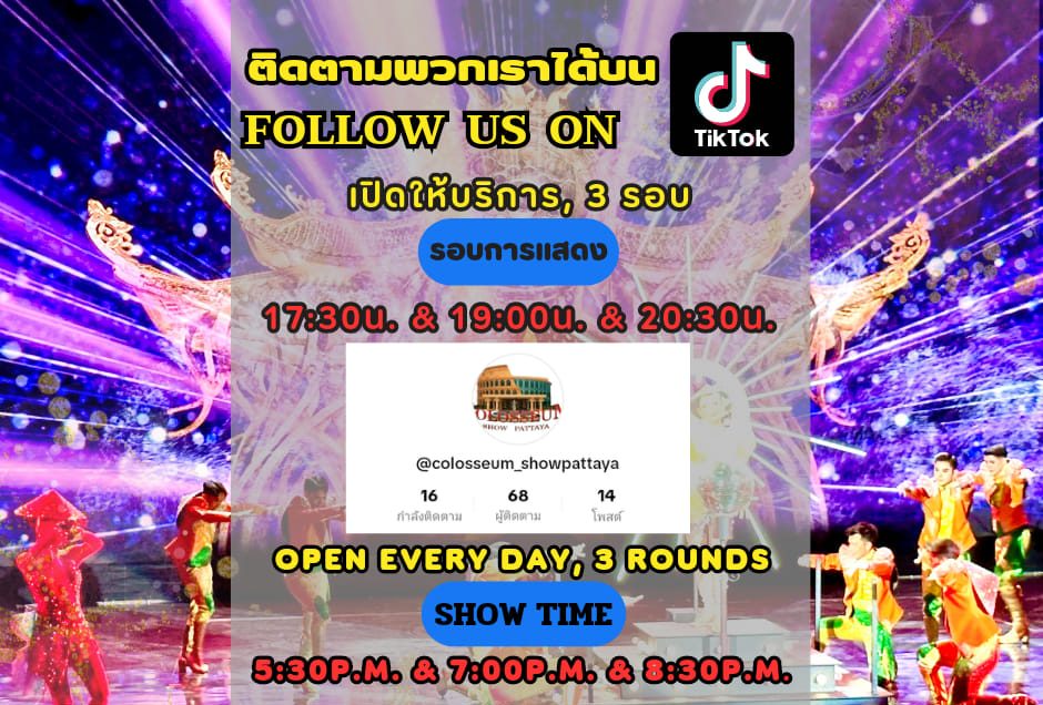 📌Tik Tok : @COLOSSEUMSHOWPATTAYA https://www.tiktok.com/@colosseumshowpattaya